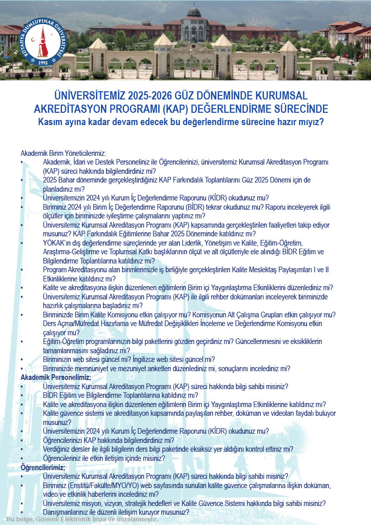 “Üniversitemiz Kurumsal Akreditasyon Programı (Kap) Sürecinde!