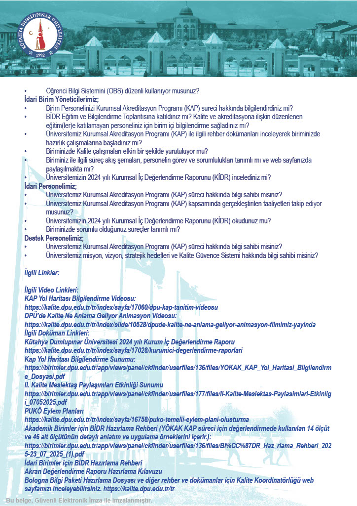 Kurumsal kalite güvencesini güçlendirmek ve paydaşlarımızla şeffaf iletişimi artırmak için